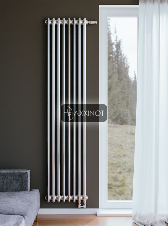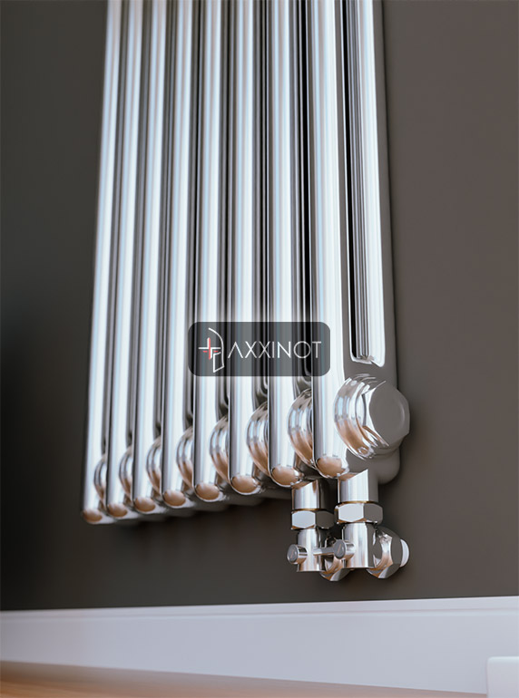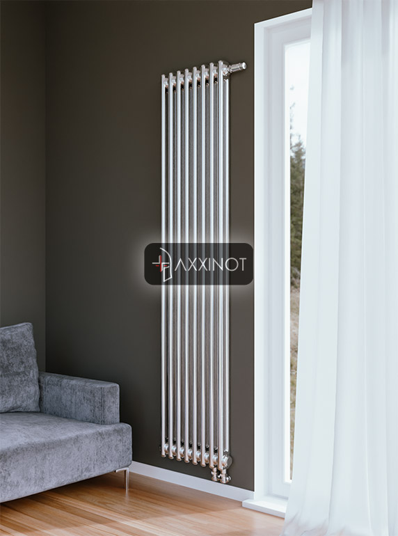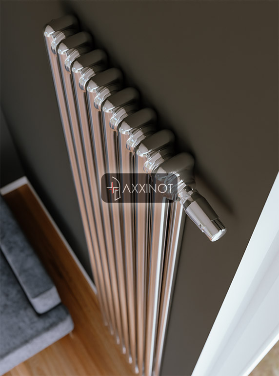 Вертикальный дизайн-радиатор Axxinot Sentir Chrome 2180 с нижним подключением и предустановленным термовентилем — это гармоничное объединение монументальной эстетики и интеллектуального управления микроклиматом. Высота 1800 метров превращает прибор в эффектную архитектурную вертикаль, которая преображает пространство, визуально увеличивая высоту потолков и добавляя интерьеру графической выразительности. Зеркальное хромирование отражает свет и окружающие предметы, делая радиатор легким и воздушным, несмотря на его внушительные габариты.
