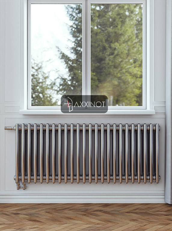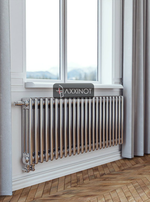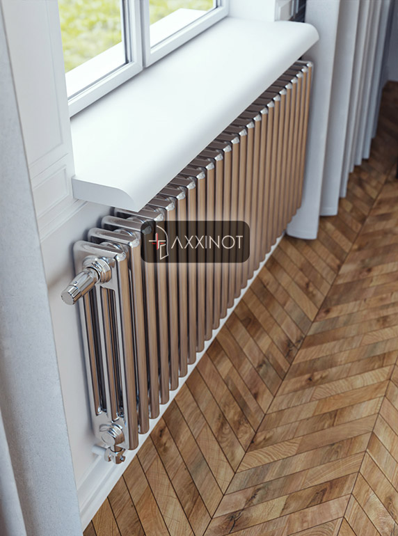 Трехтрубный дизайн-радиатор Axxinot Sentir Chrome 3050 с нижним подключением и предустановленным термовентилем — это гармоничное объединение увеличенной тепловой мощности и интеллектуального управления микроклиматом. Высота 500 мм представляет собой универсальное решение, одинаково уместное в любых помещениях: от ванных комнат до просторных гостиных. Три горизонтальных коллектора создают насыщенную фактурную поверхность, которая притягивает взгляд и становится изящным акцентом в интерьере, а зеркальное хромирование добавляет визуальной легкости и глубины.
