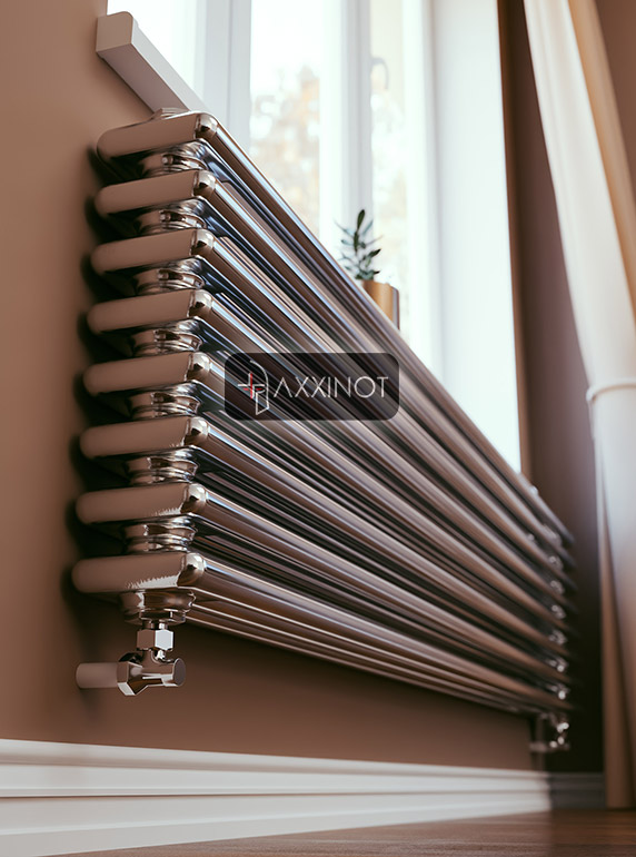 Горизонтальный трехтрубный дизайн-радиатор Axxinot Sentir Chrome Z 3180 — это впечатляющее линейное решение для интерьеров, где требуется мощный тепловой поток и выразительный горизонтальный акцент. Ширина 1800 мм превращает прибор в эффектную архитектурную композицию, которая визуально расширяет пространство, придавая помещению пропорциональность и современное звучание. Три горизонтальных коллектора создают насыщенную фактурную поверхность, которая притягивает взгляд и становится главным элементом дизайна.